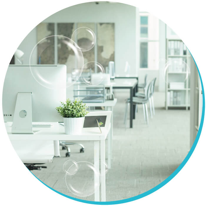 Door de gasvorm kan ozon alle hoeken en gaten bereiken die niet toegankelijk zijn met alternatieven desinfectiemethoden. Het reageert en neutraliseert ziekteverwekkers die aanwezig zijn in microscheurtjes, bv. in muren of voegen, in huishoudens, op kantoor en in elektronische apparaten (bv. tv, computers).